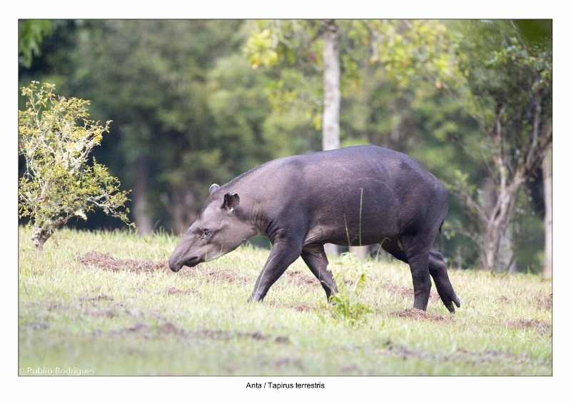 No gramado, uma anta muito saudável “desfilou” na nossa frente. Presentes da natureza! Já dentro da mata, percorrendo uma das muitas trilhas internas, aves de várias espécies.