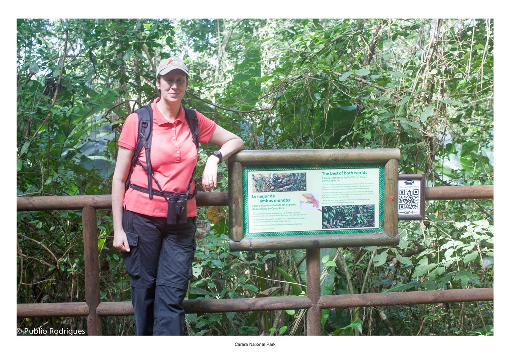 No caminho, paramos para conhecer o Parque Nacional Carara. Próximo a este parque é possível ver os imensos crocodilos, que se quiser, podem ser vistos passando pela ponte do Rio Tárcoles. No parque, com o acompanhamento de um guia, em uma duas horas fizemos uma boa trilha, com avistagem da arara vermelha, sapinho colorido, o morcego branco e mais alguns pássaros.