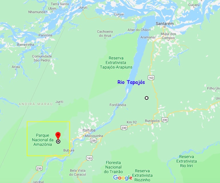 O Parque Nacional da Amazônia abrange parte dos município de Itaituba, Aveiro e Maués na região sudoeste do estado do Pará e Sudeste do estado do Amazonas. Localizado em plena Floresta Amazônica,  é cortado pela famosa estrada BR230 – Rodovia Transamazônica, com um dos seus limites no belíssimo Rio Tapajós.