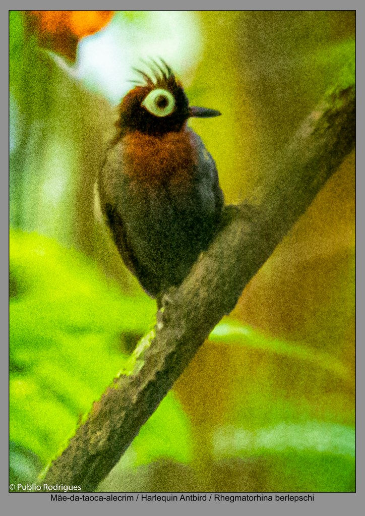 Chegando em Itaituba, já com nosso excelente guia de pássaros Thiago Rodrigues, nos encontramos com o guia do parque, Gilberto Nascimento (autorizado para guiar dentro do parque nacional), partimos direto para a Pousada Portal do Parque Nacional da Amazônia, já percorrendo a famosa Rodovia Transamazônica. Daí então, começamos nossos dias de busca dos pássaros mais inusitados da Amazônia, como a Ararajuba e a mãe-da-taoca-arlequim. Com este objetivo, percorremos vários kilômetros dentro da mata fechada deste maravilhoso parque; além dos pássaros, também conseguimos ver algumas espécies de sapinhos e observar com detalhes a vegetação composta desde minúsculas plantas até imensas árvores, próprias deste bioma.