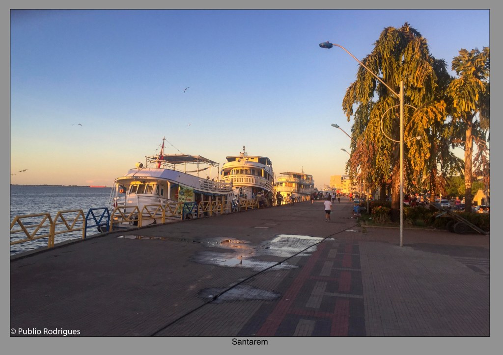 Em Santarém, um ponto muito interessante foi ver de muito perto o encontro das águas do gigante Rio Amazonas com o Rio Tapajós e também caminhar pela orla no fim da tarde, onde ficam ancorados muitos barcos que partem dali com um povo alegre e muita música, a caminho de outras cidades ribeirinhas.