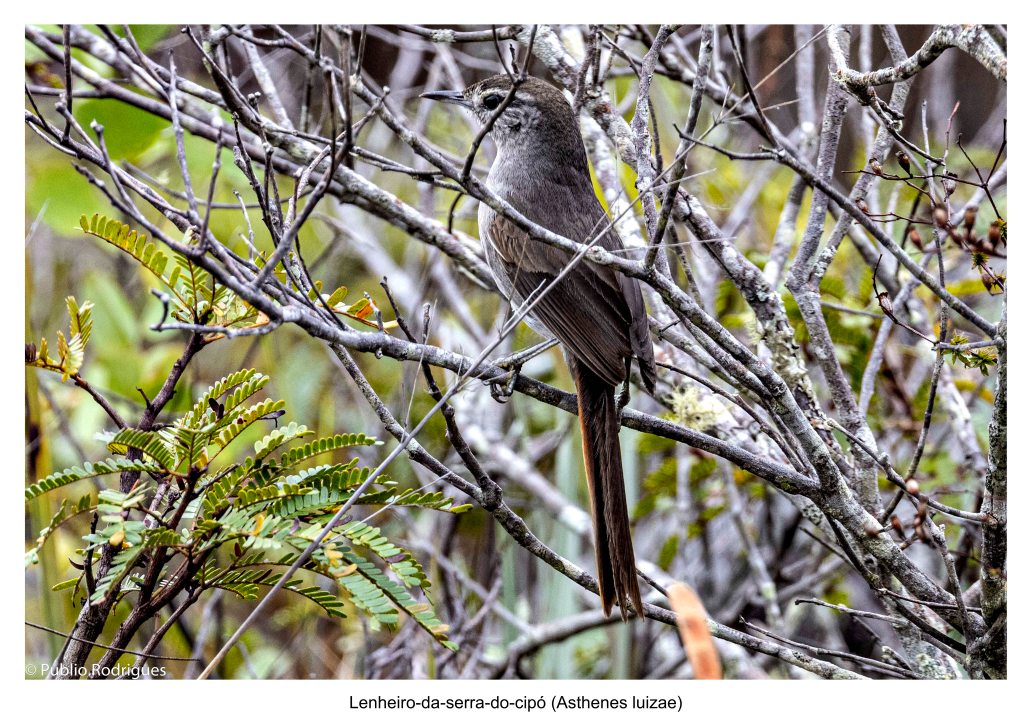 Foram dois dias nas trilhas da Reserva e os demais saímos pelas estradinhas, onde conhecemos o belíssimo Rio de Peixe e as encostas da Serra do Espinhaço. Na última saída, fizemos uma caminhada de quatro horas por trilha em subidas e descidas em pedras (conhecida como Estrada Comum, com histórias de vidas sofridas, onde se percorrem vários quilômetros a pé, entre os povoados e sítios até a cidade). Neste percurso, acompanhados também pelo guia Wilson, conseguimos observar e fotografar dois exemplares de pássaros espetaculares: o quase restrito à região – lenheiro-da-serra-do Cipó e o magnífico beija-flor-de-gravata-verde, pássaros que nos impulsiona a conhecer lugares magníficos como este.