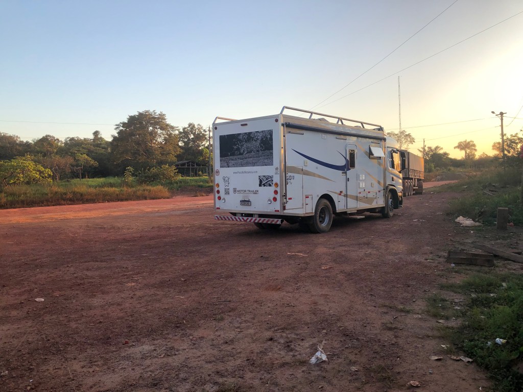 Foram 8 dias dia viagem em nosso motorhome, fazendo paradas por campings (Parque Ecoturístico da Areia Branca – sempre muito bem recebidos pela Ludmila), postos de combustíveis, pousadas etc, até chegar na barranca do Rio Aripuanã e deixar nossa “casa” no estacionamento do Restaurante Sampaio.