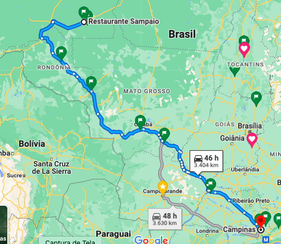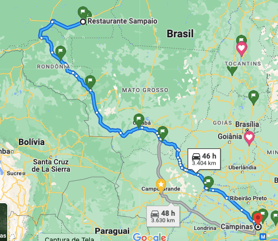 Para chegar lá, foram 3.400km de viagem, sendo 3.100km em boas estradas e 300km na Transamazônica.